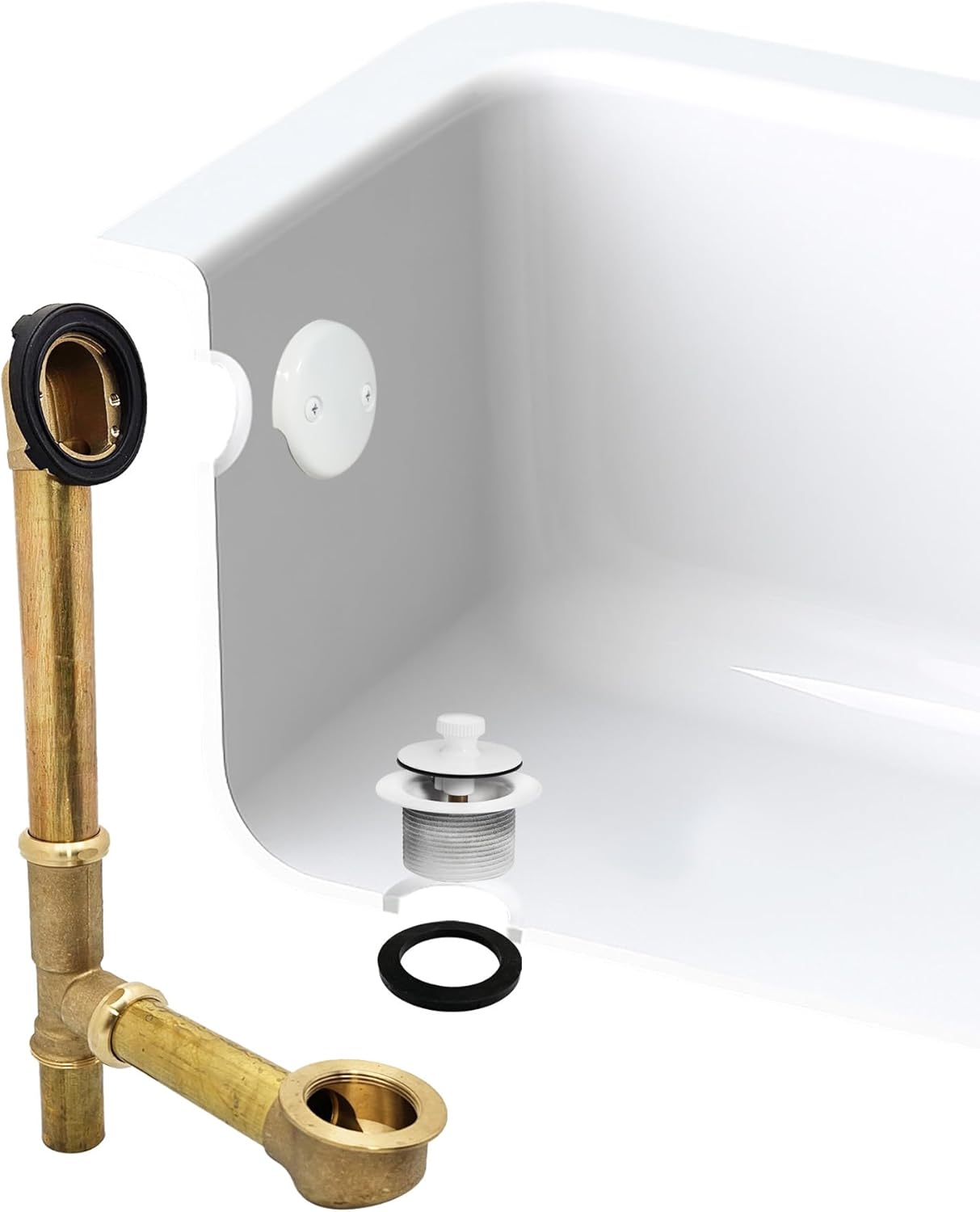 This Westbrass Pull & Drain Bath Waste Assembly is a durable and dependable solution for standard tub installations, combining traditional operation with robust construction. This 1-1/2 inch brass tubular system is crafted from 20 gauge tubing and designed with a 14 inch maximum make-up, ensuring strength and leak resistance for long-term use. The pull & drain stopper offers a classic method of opening and closing the drain with a simple lift or press action. The kit includes a two-hole overflow faceplate that attaches securely using two 1/4 in.-20 x 1-1/2 in. plated brass screws. Also included are solid brass tee, elbow, and drain components with half-ferrules for a comprehensive installation. Ideal for both residential and commercial bath applications, this kit delivers quality and performance in one complete package.