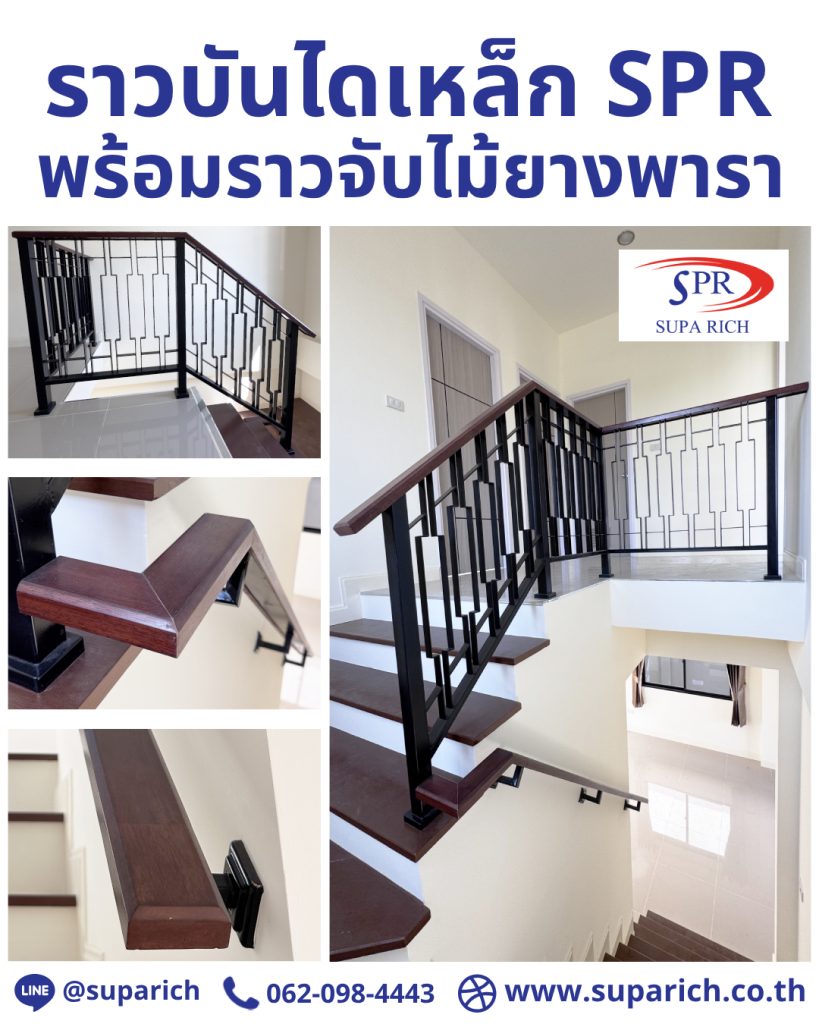 ราวบันไดเหล็ก SPR พร้อมราวจับไม้ยางพารา